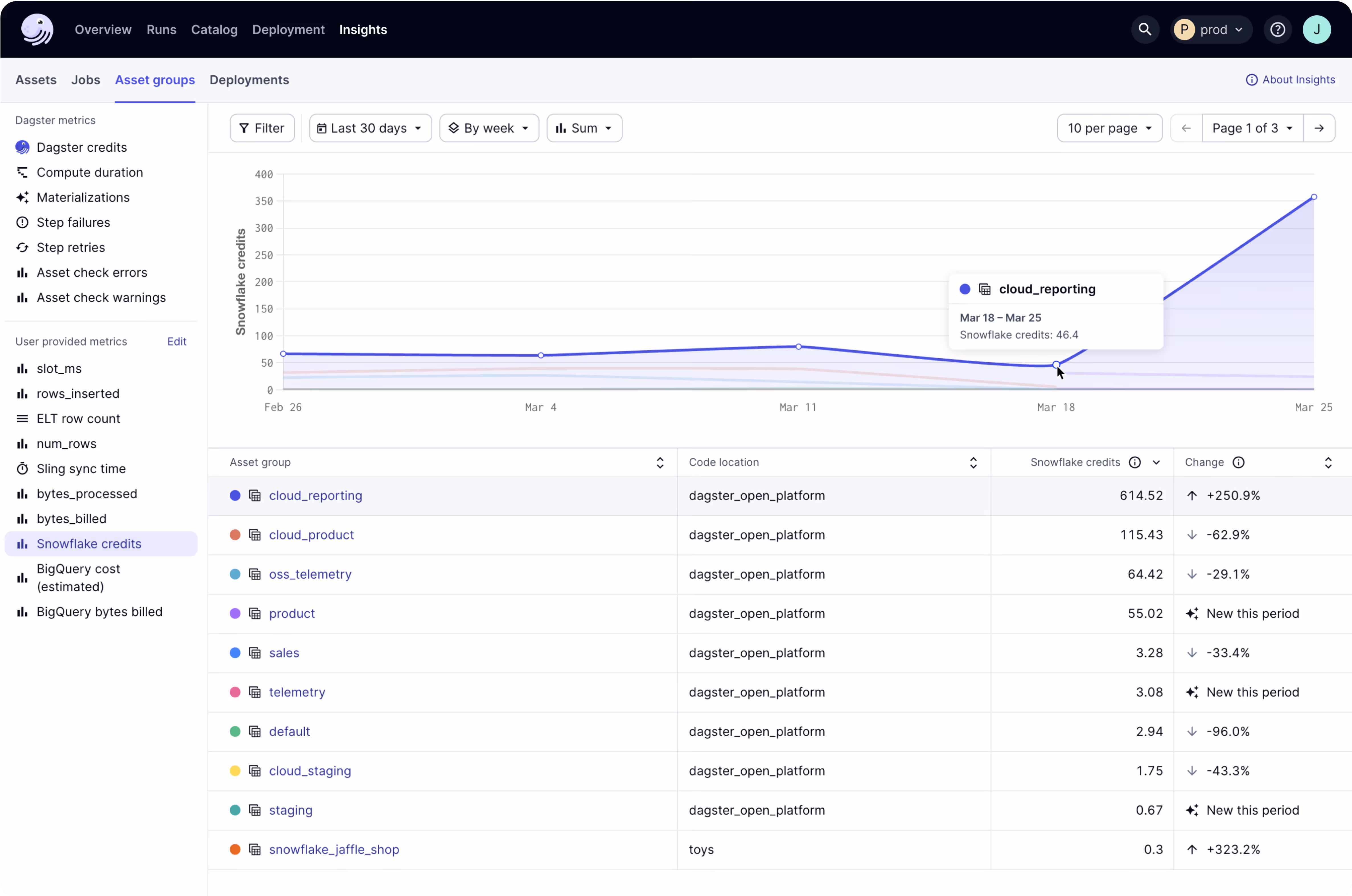 Dagster helps you understand the costs behind each asset and dataset.